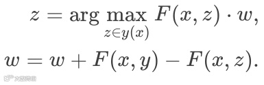 机器学习领域的老年人应该还记得, 2002年Michael Collins凭借 Discriminative Training Methods for Hidden Markov Models: Theory and Experiments with Perceptron Algorithms 获得了该届EMNLP会议的最佳论文.这篇论文里Collins对可谓"史上最简单"的机器学习算法感知机进行了扩展.感知机算法在1957年被发明,几乎是与"人工智能"这个词语的提出同岁,源远流长.Collins将其适用范围从原来简单的二分类,扩展到了结构化预测领域,后人称该算法为Structured Perceptron.这个算法可以用两行概括,简洁优美:对于训练样本