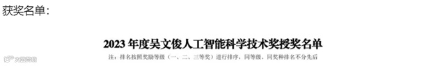 举行,70个项目及个人获评2023年度吴文俊人工智能科学技术奖。其中包括吴文俊人工智能最高成就奖1项、吴文俊人工智能杰出贡献奖3项、吴文俊人工智能自然科学奖6项、吴文俊人工智能技术发明奖6项、吴文俊人工智能科技进步奖14项、吴文俊人工智能科技进步奖(企业技术创新工程项目)4项等奖项。