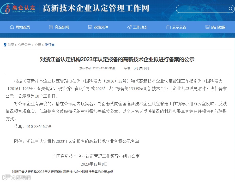 全国高新技术企业认定管理工作领导小组办公室根据《高新技术企业认定管理办法》(国科发火〔2016〕32号)和《高新技术企业认定管理工作指引》(国科发火〔2016〕195号)有关规定,发布《浙江省认定机构2023年认定报备的高新技术企业备案公示名单》,杭州倚澜科技有限公司(“倚澜科技”)顺利通过认定,被授予“国家高新技术企业”称号。