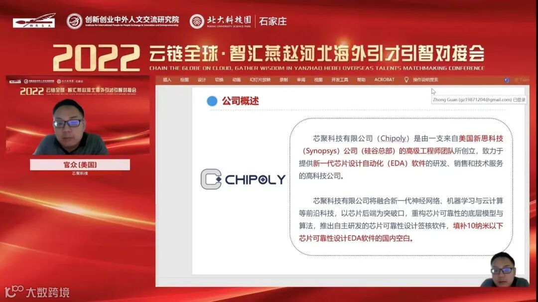 ▲官众(美国) 芯聚科技创始人 介绍海外对接项目