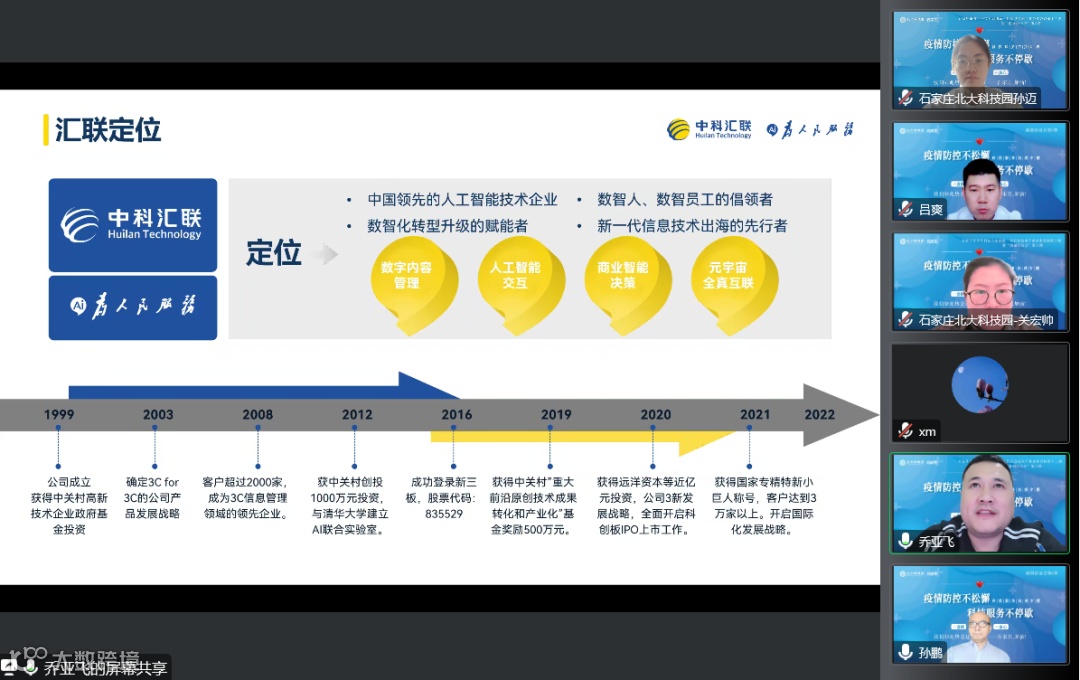 参与本期活动的企业为北京中科汇联科技股份有限公司,活动邀请来自投资领域的深圳追梦者投资管理有限公司创始合伙人孙鹏,来自中关村国企的北京中关村智酷双创人才服务股份有限公司双创产品总监朱广超以及国家工信部产教融合“产业实践教授”、北京大学访问学者、河北欧美同学会·河北留学人员联谊会专委会委员吕爽参会,与企业就深挖数字人应用场景及落地推广共同交流探讨。