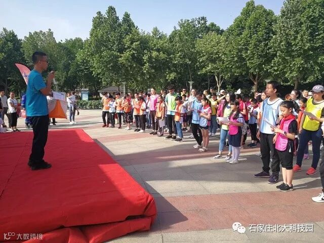 018年5月27日上午,石家庄北大科技园团工委与石家庄市少工委、共青团石家庄裕华区委、石家庄裕华区少工委、石家庄裕华区妇女联合会,在石家庄市世纪公园共同举办“新时代双创双服公益大讲堂——‘4+4’产业青年在行动”首期手拉手智跑六一公益活动,来自裕华区“4+4”产业青年代表、热心公益事业人士、品学兼优儿童等共计120余人参加此次活动。