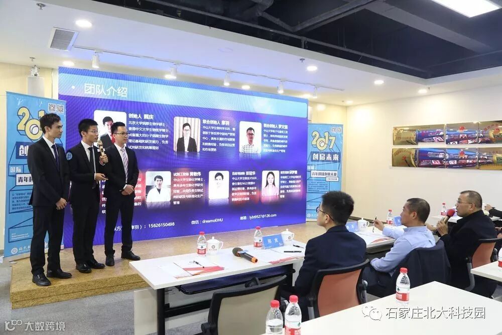 2017年10月26日,由石家庄市裕华区人民政府、共青团石家庄市委员会、北大科技园、北大孵化器主办,石家庄北大科技园、中国电子系统工程第四建设有限公司共同承办的“创启未来”2017国际青年科技创业大赛石家庄城市赛在石家庄北大科技园成功举办。共青团石家庄市委副书记曹晶,石家庄市裕华区科技局局长边庆敏,共青团裕华区委书记张燕,石家庄裕华区科技局副局长王立华,北大科技园副总裁田瑞波,石家庄北大科技园副总经理郭子卿及合作单位、投资机构、企业家、青年创业者近百人到场支持与观摩。