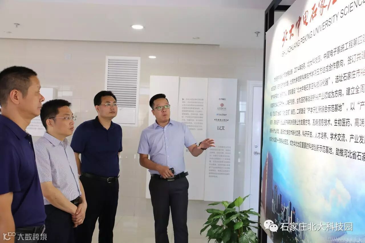 2017年8月9日,石家庄市裕华区区委常委、常务副区长刘禹莅临石家庄北大科技园参观考察,区科技局局长边庆敏、区发改局局长曹秀婷、区财政局局长赵军会、区编委办副主任徐彦华陪同,石家庄北大科技园副总经理郭子卿出席接待。