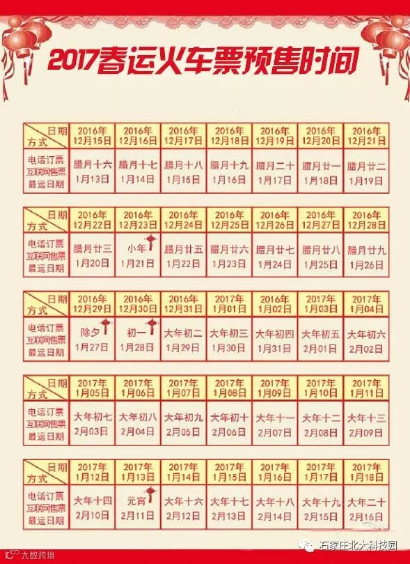 春运火车票预售时间表,