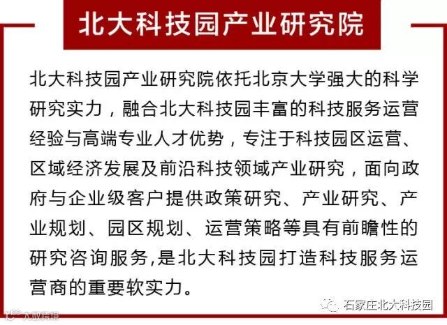校地合作、协同创新,打造石家庄科技创新高地。长按下图中的二维码,选择“识别图中二维码”,即可添加“石家庄北大科技园”微信公众号。