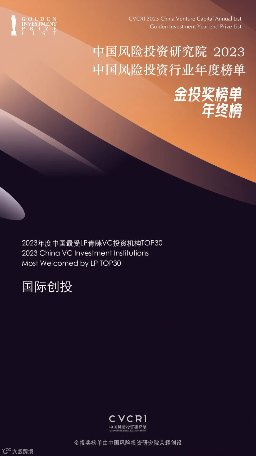 凭借杰出的投资能力和优异的投资表现,国际创投首度荣登年度“中国最受LP青睐VC投资机构TOP30”,连续第五年荣获年度“中国影响力VC投资机构TOP50”(No.22),上实投资/国际创投董事长郭箭先生再次荣获年度“中国影响力VC投资家TOP50”(No.16)。
