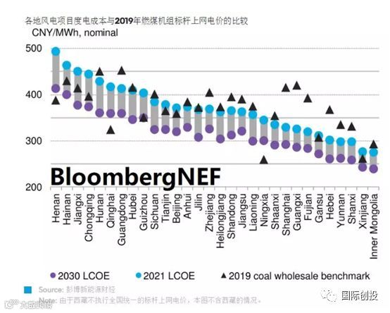 2021年,中国陆上风电将实现全面平价,中国风电行业增长或受阻力。建造成本等于或低于燃煤机组标杆上网电价的项目的重担就落到了开发商的肩上。到2030年,BNEF预计新项目的平准化成本会比现在低30%,31省中将有27省具备平价条件。
