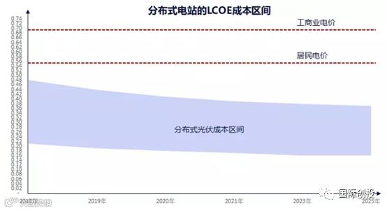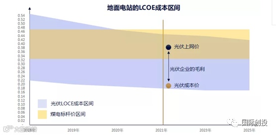 从上面可以看出,煤电标杆是个区间0.3-0.45元,不同地区标杆电价不同,而光伏电站因不同区域光照不同,电站成本也是个区间,2018年地面电站区间为0.22-0.55元。