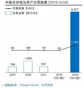 第三方的统计数据也印证了这一点。不久前,TUV莱茵和普华永道共同发布的《2019中国光伏电站资产交易白皮书》(以下称“白皮书”)中,统计了2015~2018年中国光伏电站的交易规模及交易金额,如下图所示。