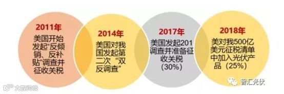 中国与美国的光伏贸易摩擦渊源已久。2011年至今已经4次,如下图所示。