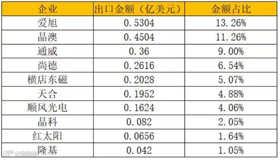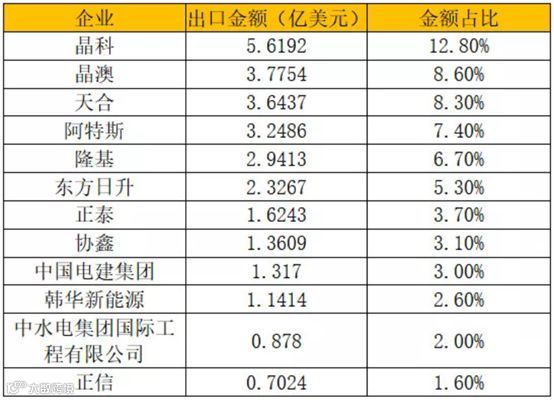 2018年8月,欧盟宣布,对话光伏产品的双反税率于9月3日到期后终止,随后中国对欧盟的出口大幅增长;新兴市场的快速增长,给中国的光伏产品提供了广阔的市场。因此,中国光伏产品的出口量大幅增加,即使在产品价格大幅下降的情况下,对外出口额也逐年增长。