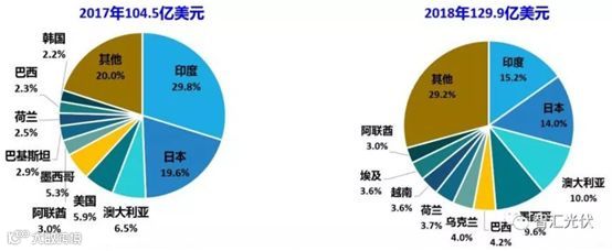 其中,特变电工、金风科技、天合光能、东方日升、正泰电气五家光伏跻身2018年中国电力行业境外电力项目签约额前50名。相信2019年国内光伏企业在海外的投资会大幅增加。