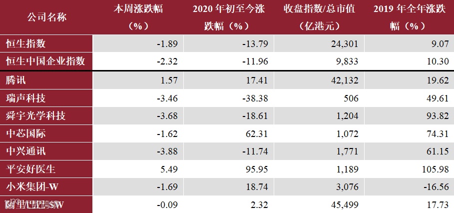 注:阿里巴巴-SW于2019年11月首发上市,2019全年涨跌幅以上市首日发行价为基准