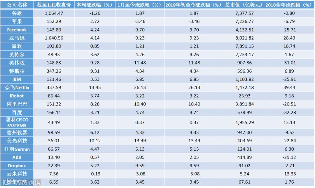对于跨市场相关上市公司,我们分别从美股和港股市场,暂时选择了最具代表性的21只美股及10只港股,追踪其二级市场行情动态。