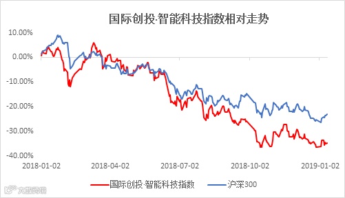 2018年初以来,国际创投·智能科技指数与沪深300指数的走势对比如下所示: