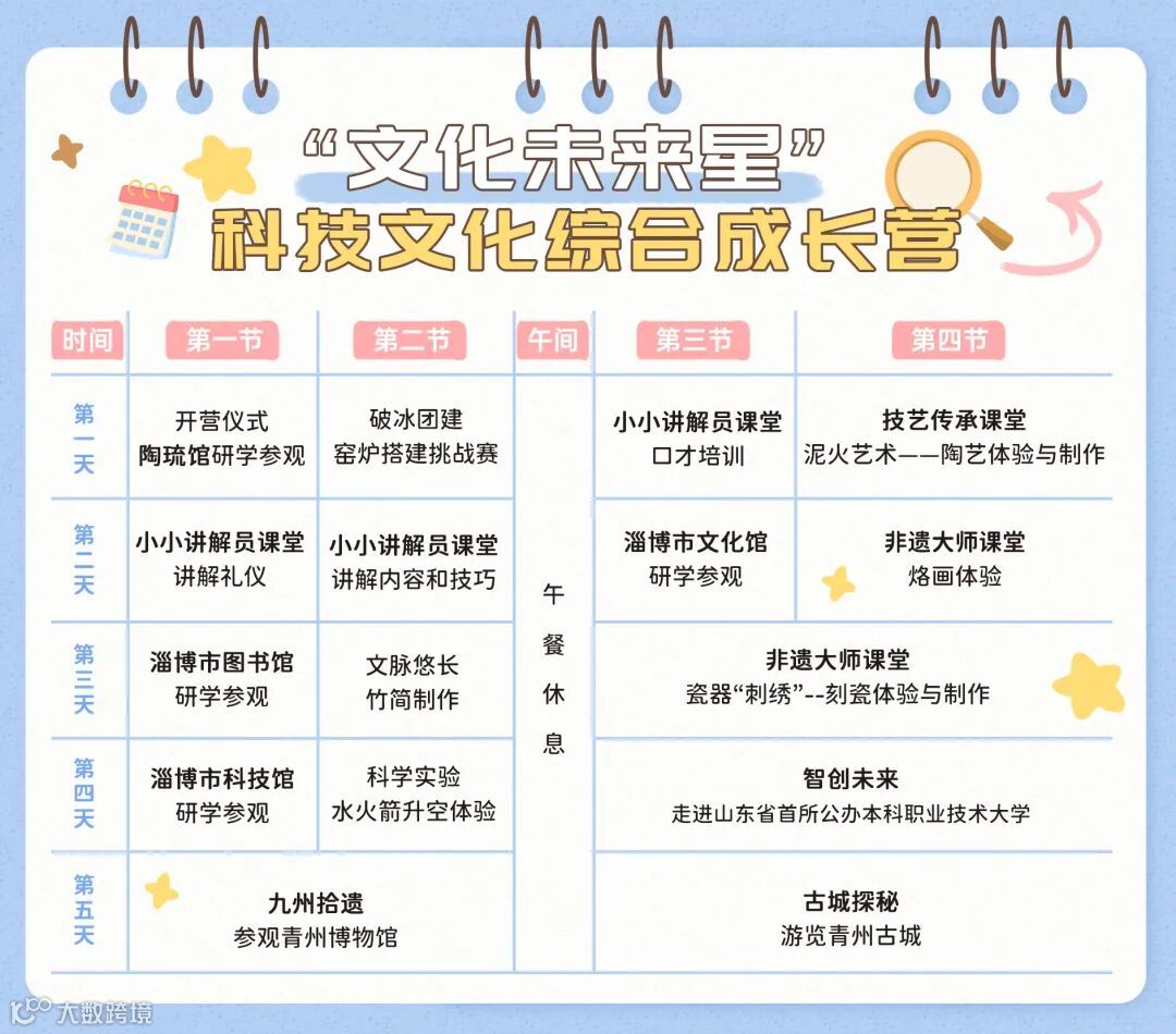 在营内将开启一段沉浸式的文化研学之旅,穿越千年,文化稽古,走进青州古城与博物馆中探寻齐风汉韵、海岱文脉。