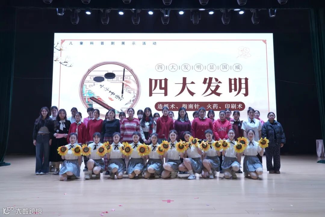 演出伊始,充满童趣的开场舞《祖国的花朵》一下点燃了现场观众的氛围,伴随着小朋友们有节拍的摇摆,剧幕缓缓拉开。志愿者们通过故事演绎与舞美的融合,将中国古代四大发明——造纸术、指南针、印刷术、火药一幕幕生动的展现在观众面前,让小朋友们更加深刻地理解四大发明的深远影响、伟大意义和科技的重要性。演出最后,志愿者和观众们用手指摇的方式一起互动,让历史和知识变得趣味横生。
