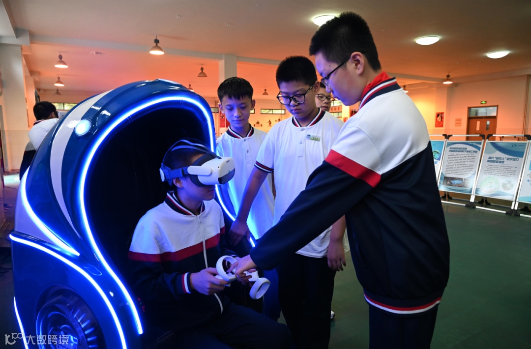 在VR蛋椅展区前,同学们排起了长长的队伍,每个人的脸上都写满了期待。当终于轮到自己时,他们迫不及待地坐进蛋椅,戴上 VR 眼镜,瞬间被带入一个全新的虚拟世界。有的同学仿佛置身于浩瀚的宇宙中,周围是璀璨的星辰和神秘的天体;有的同学则来到了古老的丛林,与奇花异草和珍稀动物亲密接触。他们不时发出阵阵惊叹声,完全沉浸在这奇妙的体验中。
