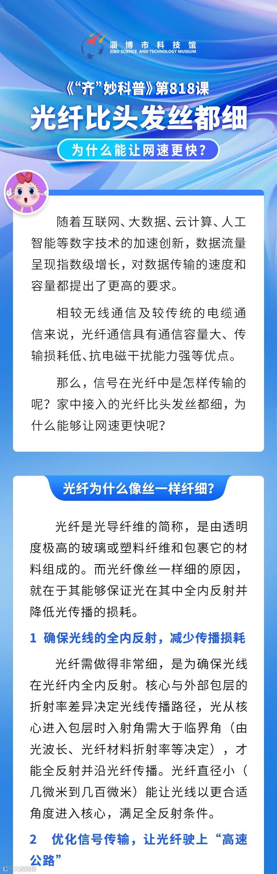 【可以听的科学课】《“齐”妙科普》第818课  光纤比头发丝都细,为什么能让网速更快? 淄博市科技馆
