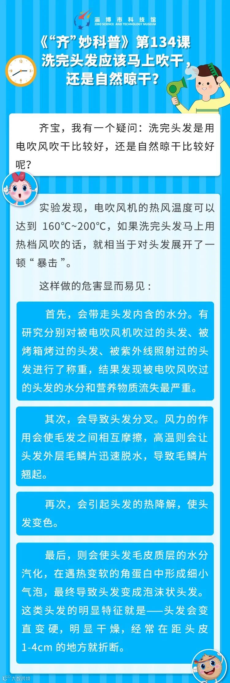 【可以听的科学课】《“齐”妙科普》第134课  洗完头发应该马上吹干,还是自然晾干? 淄博市科技馆