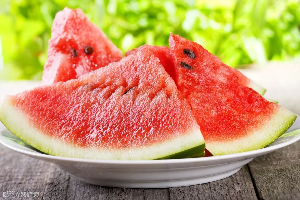 西瓜富含维生素A、维生素C、维生素B₆以及纤维素等,还含有抗氧化的类胡萝卜素和番茄红素,不仅爽口解渴还能清热解暑。
