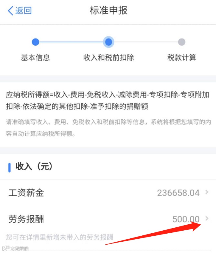按照标准流程办理年度汇算时,需要确认个人综合所得收入信息。其中工资薪金和特许权使用费收入可以自动提取,但劳务报酬和稿费报酬收入,不能自动带入,需要申报人自行导入或补充填报。