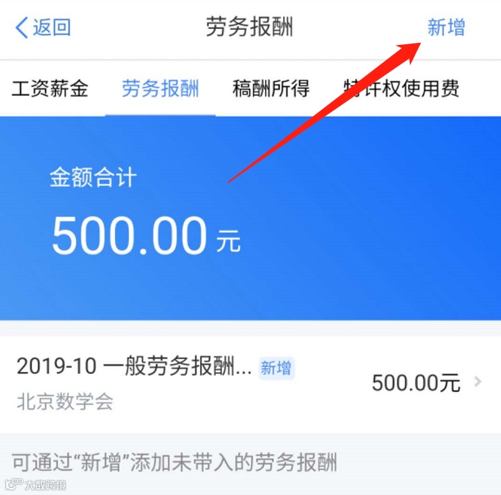 如果2019年有劳酬或稿酬所得,请点击“劳务报酬“或“稿酬所得”右侧的箭头,再点击页面右上角”新增“(如上图示),推荐选择”查询导入“方式,完善劳酬和稿酬所得信息。