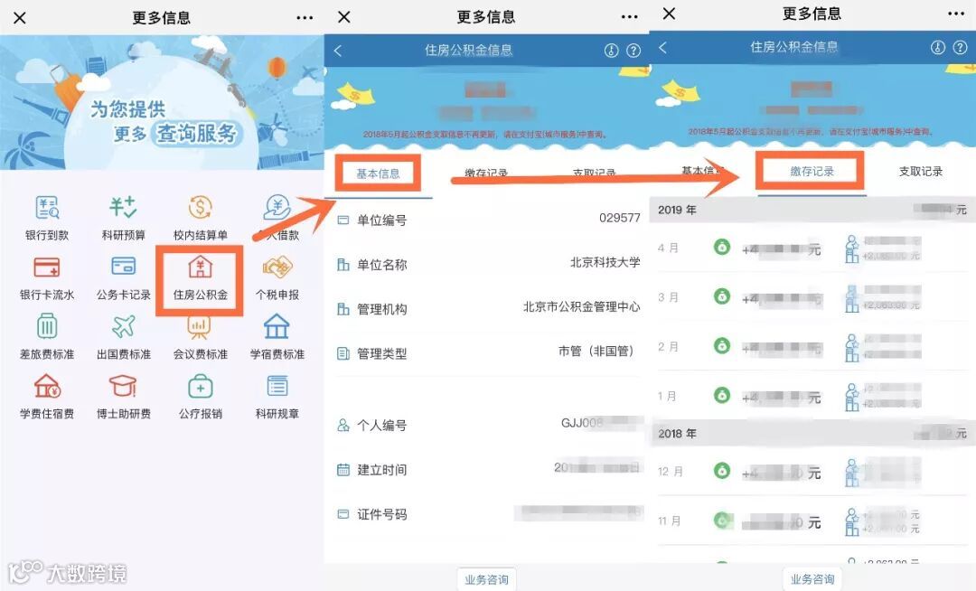 点击“信息查询”----“公积金查询”查看