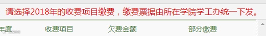 学校不预收以后年份的学宿费,请选择2018年当年的收费项目缴费,如果错误选择缴费年份,请联系财务处综合科申请调整。