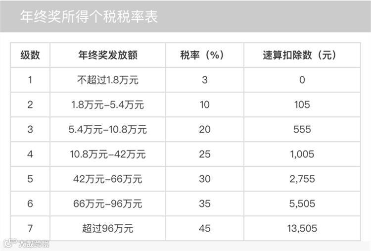 年终一次性奖励税率表