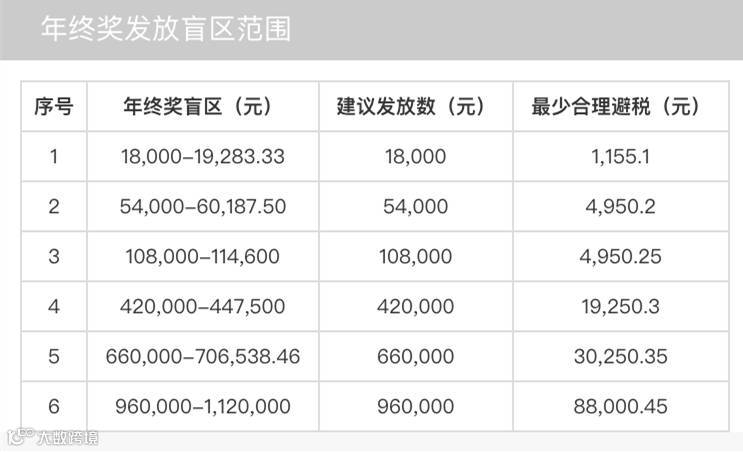 年终奖发放盲区表