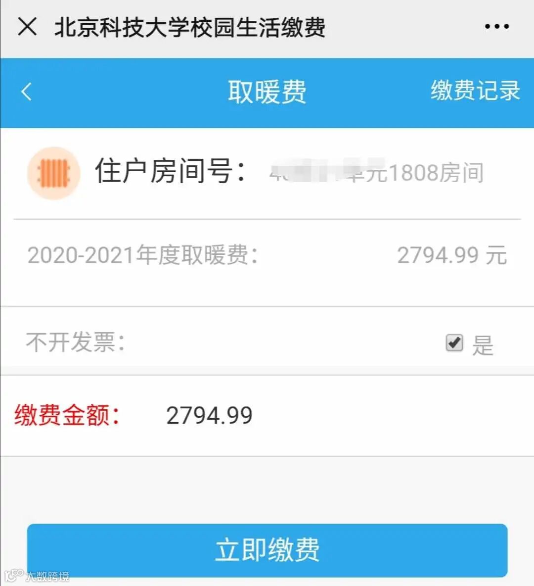 首次缴费时,需先绑定房间号信息。房间号输入格式为“**栋**单元****”,例如“18栋01单元0201”。