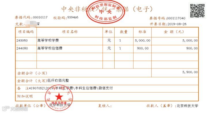 - 缴费票据 -