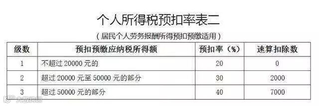 劳务报酬所得以每次收入额为应纳税所得额,适用个人所得税税率表三计算应纳税额。以收入减除百分之二十的费用后的余额为收入额。