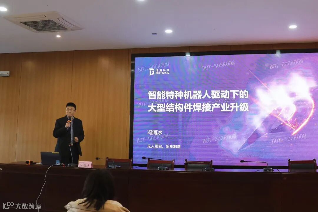 在合肥工业大学举办的“智驱领航,机械融界”校企创享汇上,冯消冰董事长以《大型复杂结构智能焊接技术研究与实践》为题,与研究生们分享了博清科技在爬焊机器人领域的最新研发成果。他从工程实践出发,深入解析了大型复杂场景下的技术难点与创新方案,激发了师生对智能制造未来的深入思考。