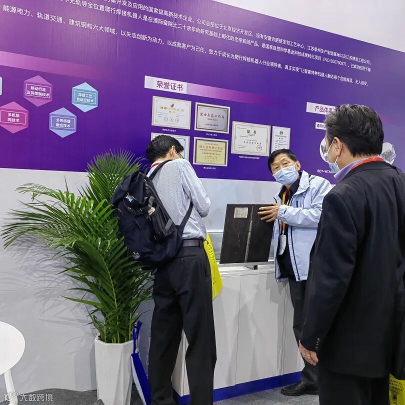 博清科技携智能特种机器人—无轨导全位置爬行焊接机器人亮相展会现场,焊接机器人因其无轨道、无导向、自主识别焊缝、高效率等性能优势吸引无数观众驻足观看、交流。展会现场,工作人员为观众进行了产品演示,参展观众就产品的应用场景、施工效率、焊缝成型等专业问题与现场工作人员进行深入交流,为业务拓展带来新的契机。