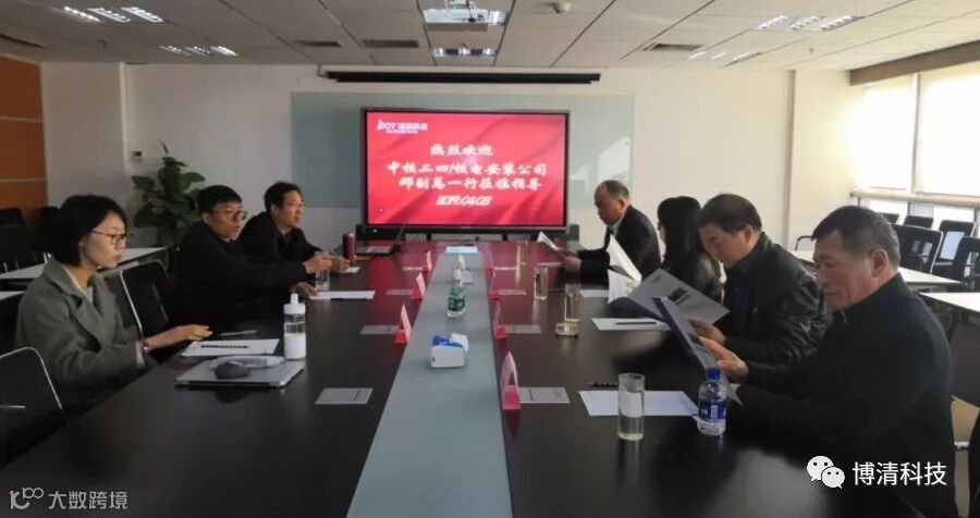2019年4月3日上午,中国核工业二四建设有限公司邓克剑副总、中国核工业二三建设有限公司潘国伟副所长、中国核工业华兴建设有限公司张科清书记、王建国技术专家一行四人,到访博清科技,总经理冯消冰一行接待了来宾。