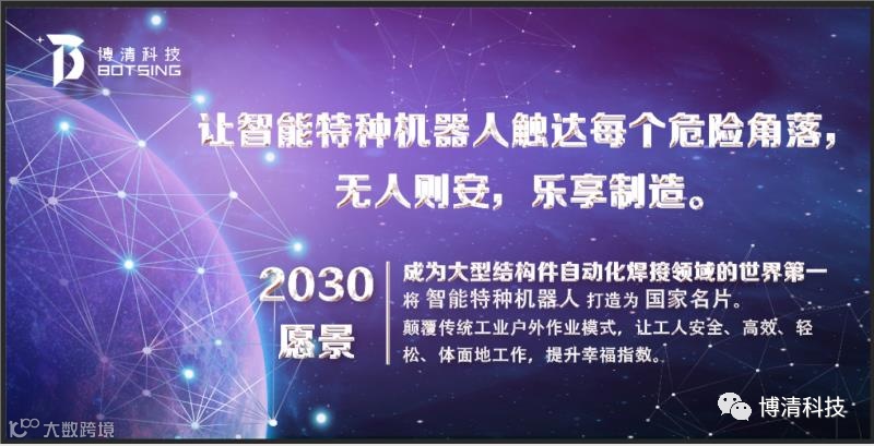 博清科技致力于成长为爬行焊接机器人行业领导者,公司成立于2017年1月,专业从事爬行焊接机器人系统研发、制造与焊接技术服务,是国家高新技术企业。公司设有院士专家工作站,拥有以潘际銮院士为核心的专家团队,在总经理冯消冰的带领下,组建焊接工艺、机械、电控、图像处理、项目管理等领域技术和管理团队,将无轨导全位置爬行焊接机器人推广应用至油气化工、船舶制造、核电、能源、轨道交通等多个领域的大中型结构件自动化焊接。