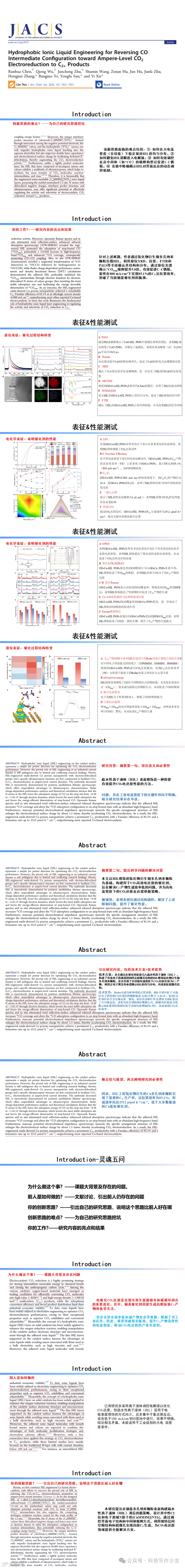 JACS:疏水性离子液体工程用于逆转CO中间体构型实现安培级CO₂电还原为C₂₊产物