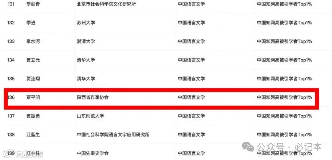 2024年度高被引学者贾平凹