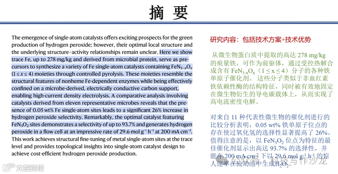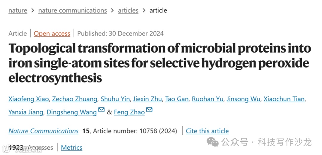 微生物蛋白的逆袭:铁单原子助力过氧化氢绿色电合成