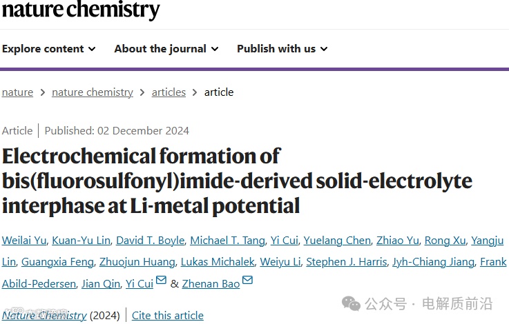 Electrochemical formation of bis(fluorosulfonyl)imide-derived solid-electrolyte interphase at Li-metal potential.Nature Chemistry (2024). https://doi.org/10.1038/s41557-024-01689-5