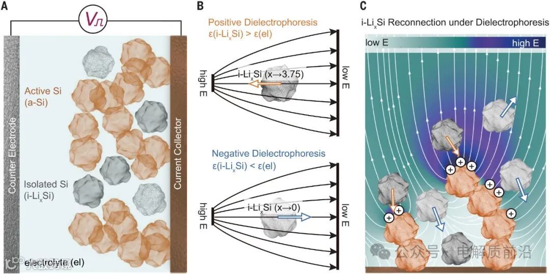 4) 发现交流电泳现象可以用来恢复硅负极的容量,让高能量密度硅负极电池寿命大大延长,由博士生Yufei Yang领衔, 论文在Science上发表;