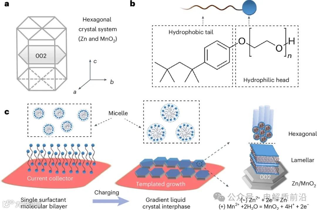 原位形成液晶界面沉积Zn/MnO2表面活性添加剂的设计骨架图