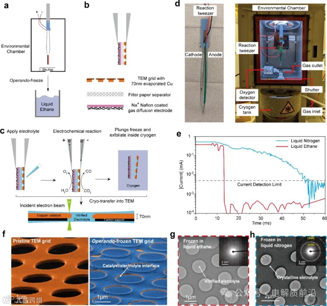 电化学操作冷冻装置的工作原理和样品制备过程图