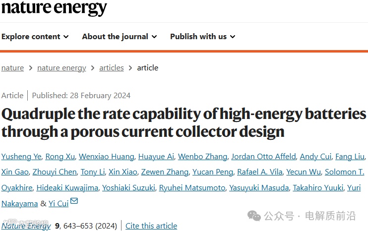 Quadruple the rate capability of high-energy batteries through a porous current collector design. Nature Energy (2024). https://doi.org/10.1038/s41560-024-01473-2