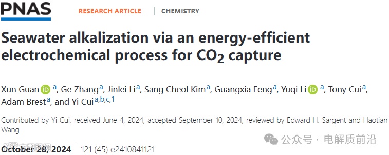 Seawater alkalization via an energy-efficient electrochemical process for CO2capture, Proceedings of the National Academy of Science(2024 )