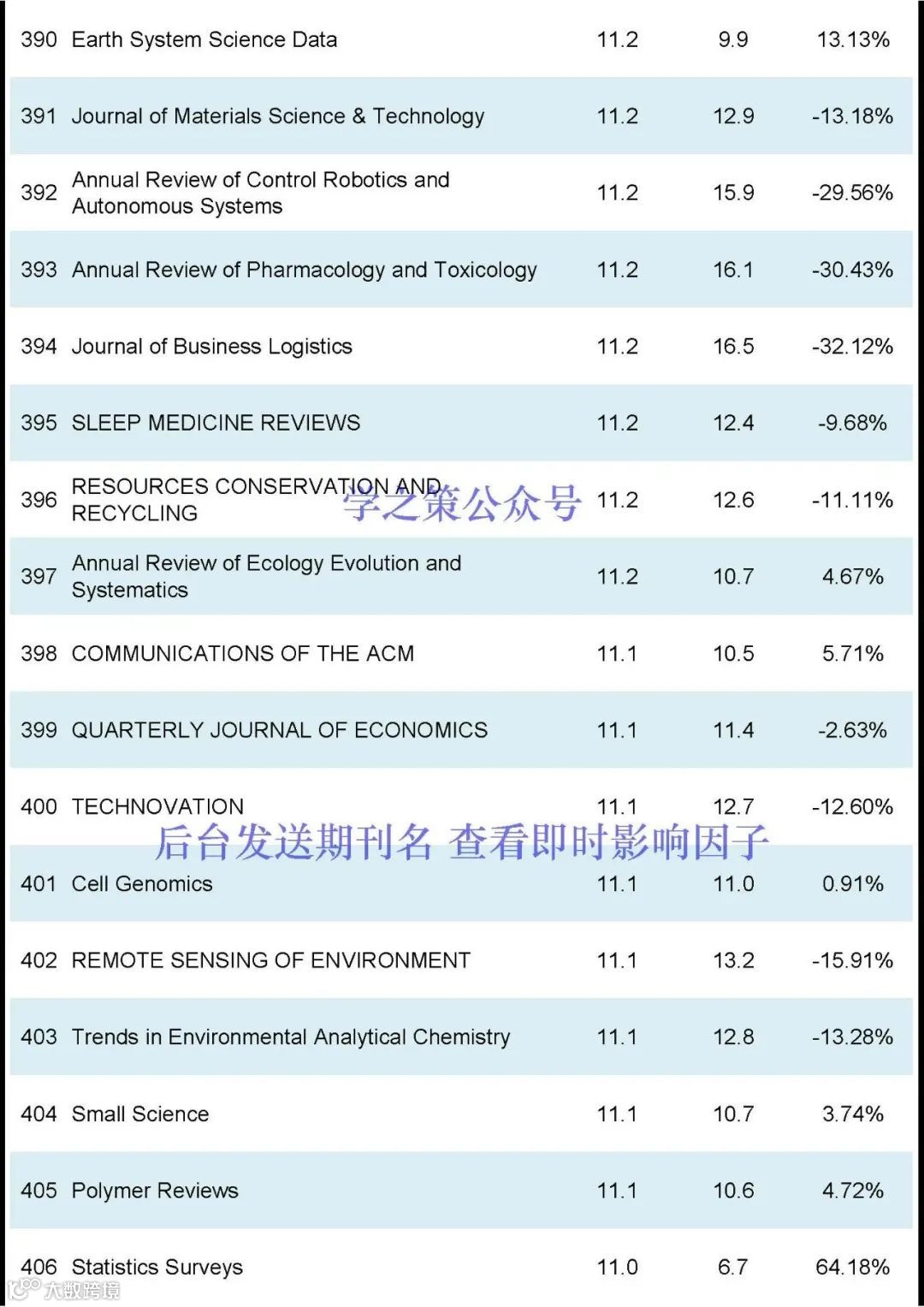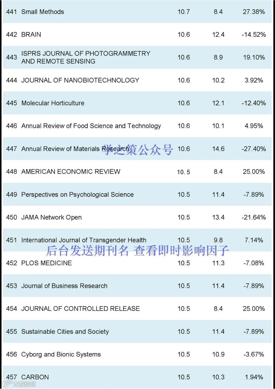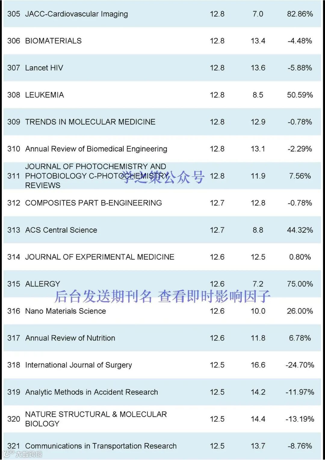 期刊的影响因子排名前600名(后台发送“JCR”获得影响因子完整版):
