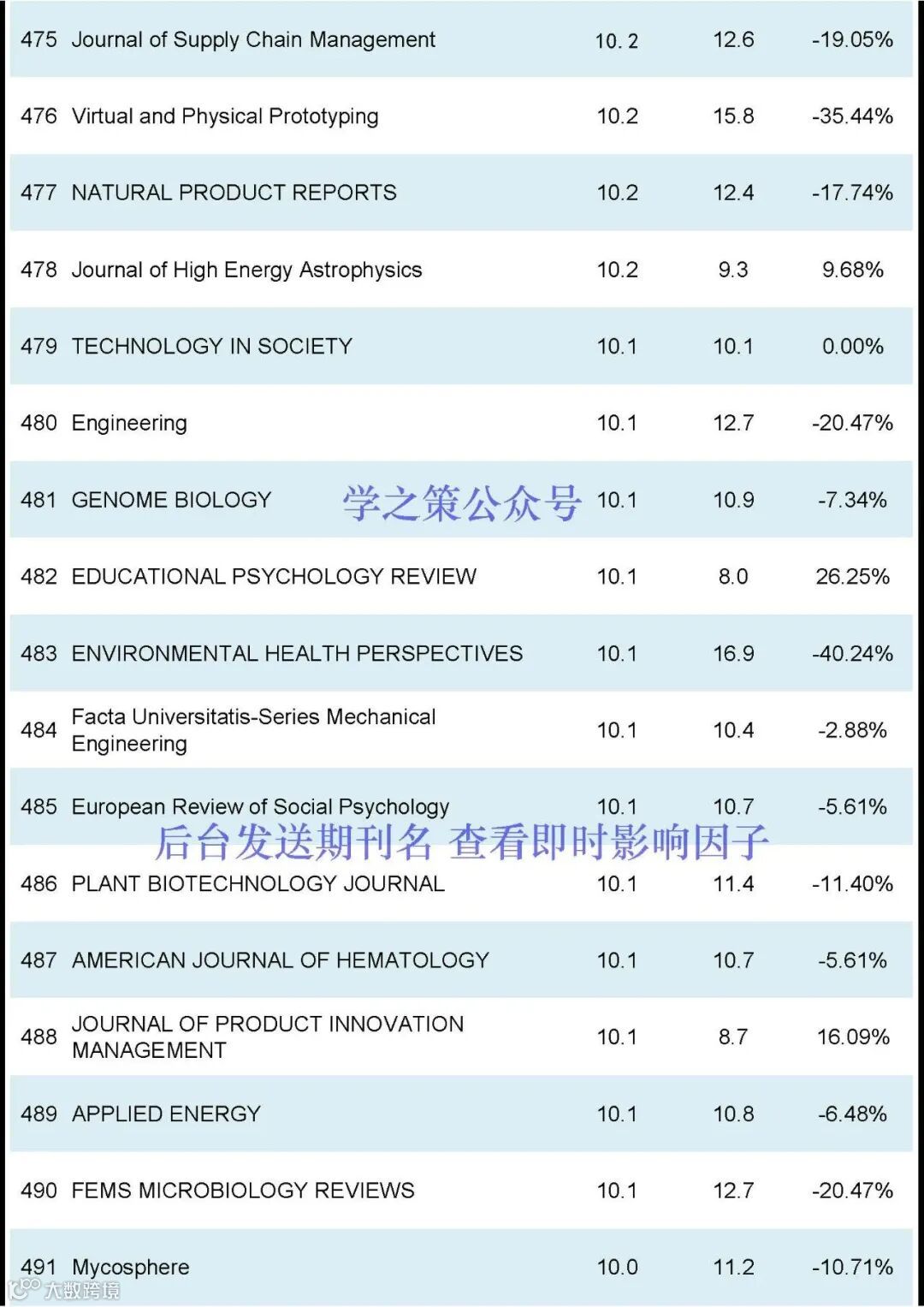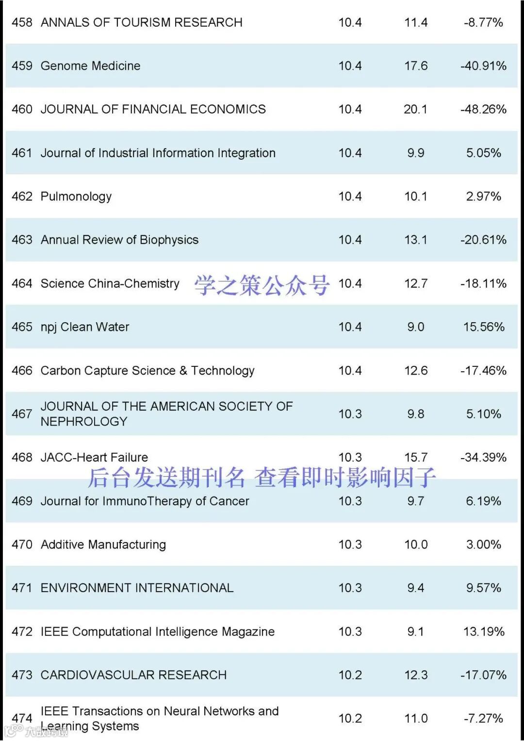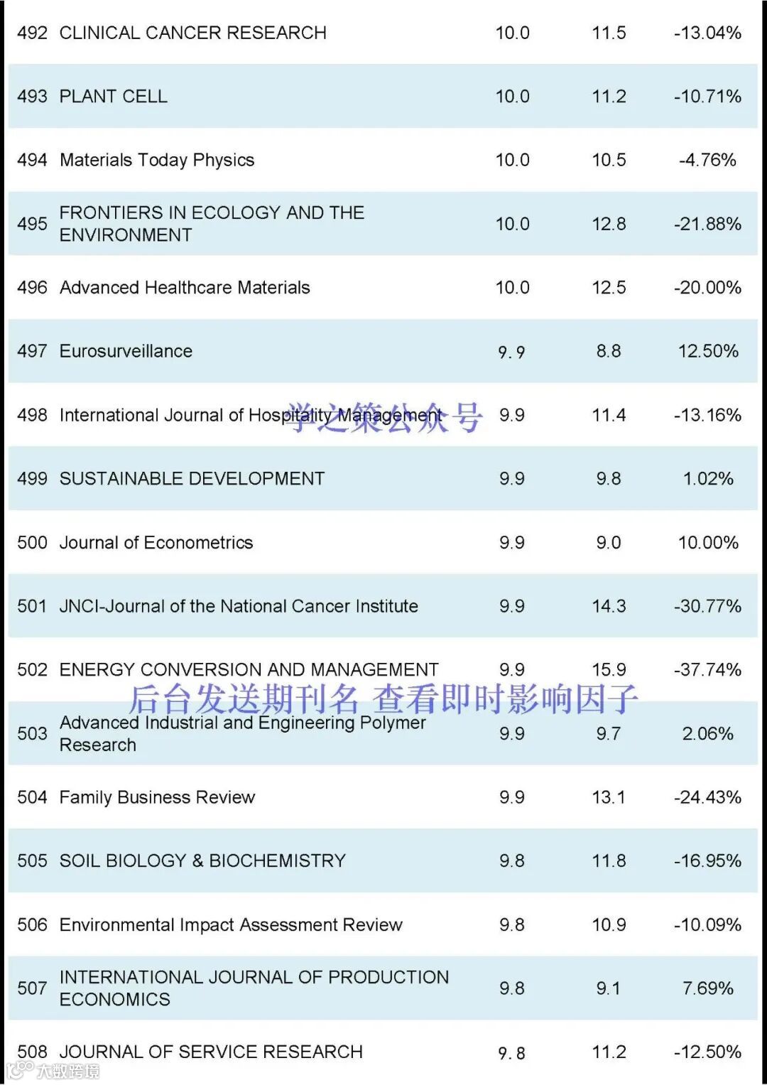 期刊的影响因子排名前600名(后台发送“JCR”获得影响因子完整版):